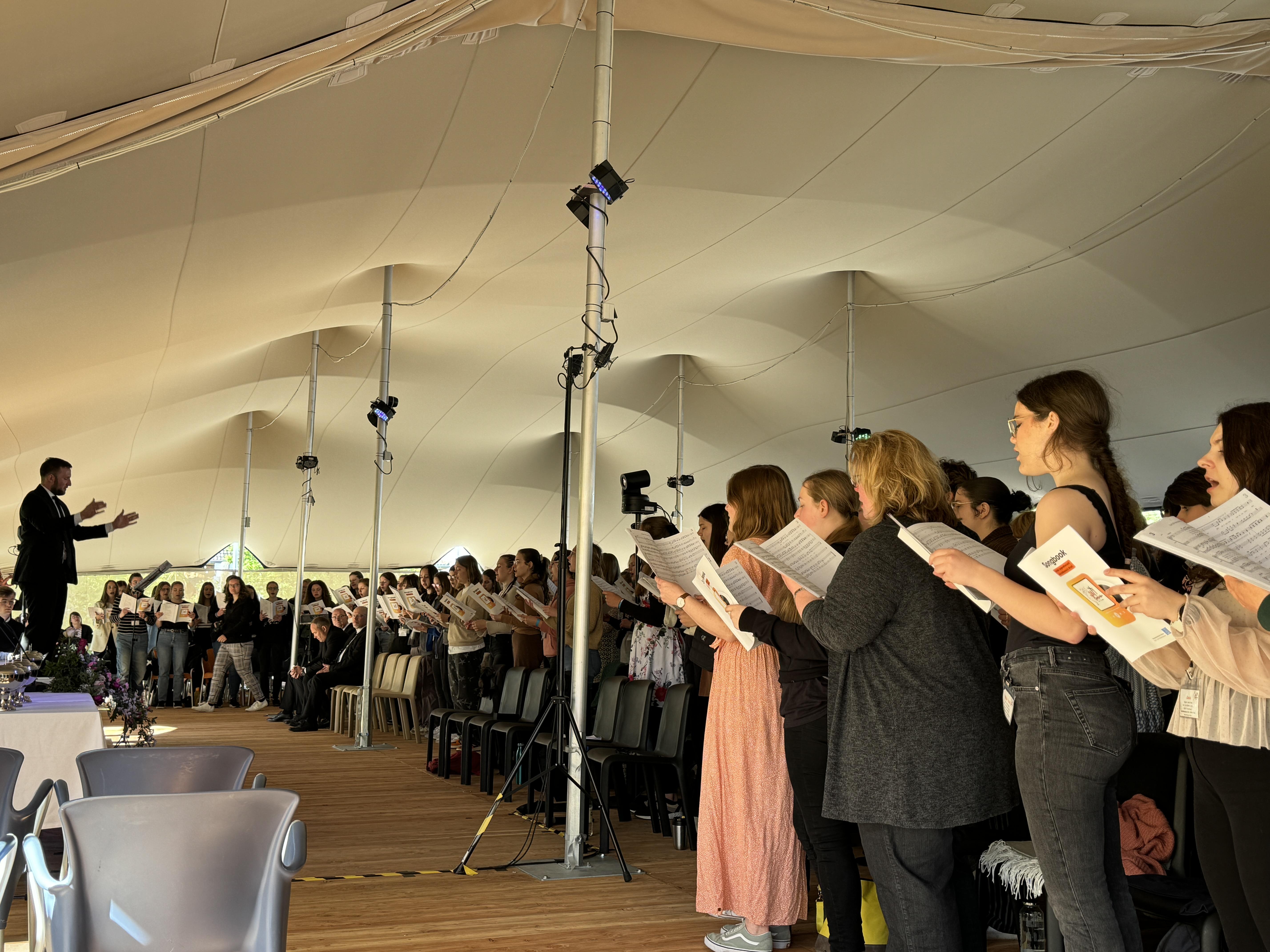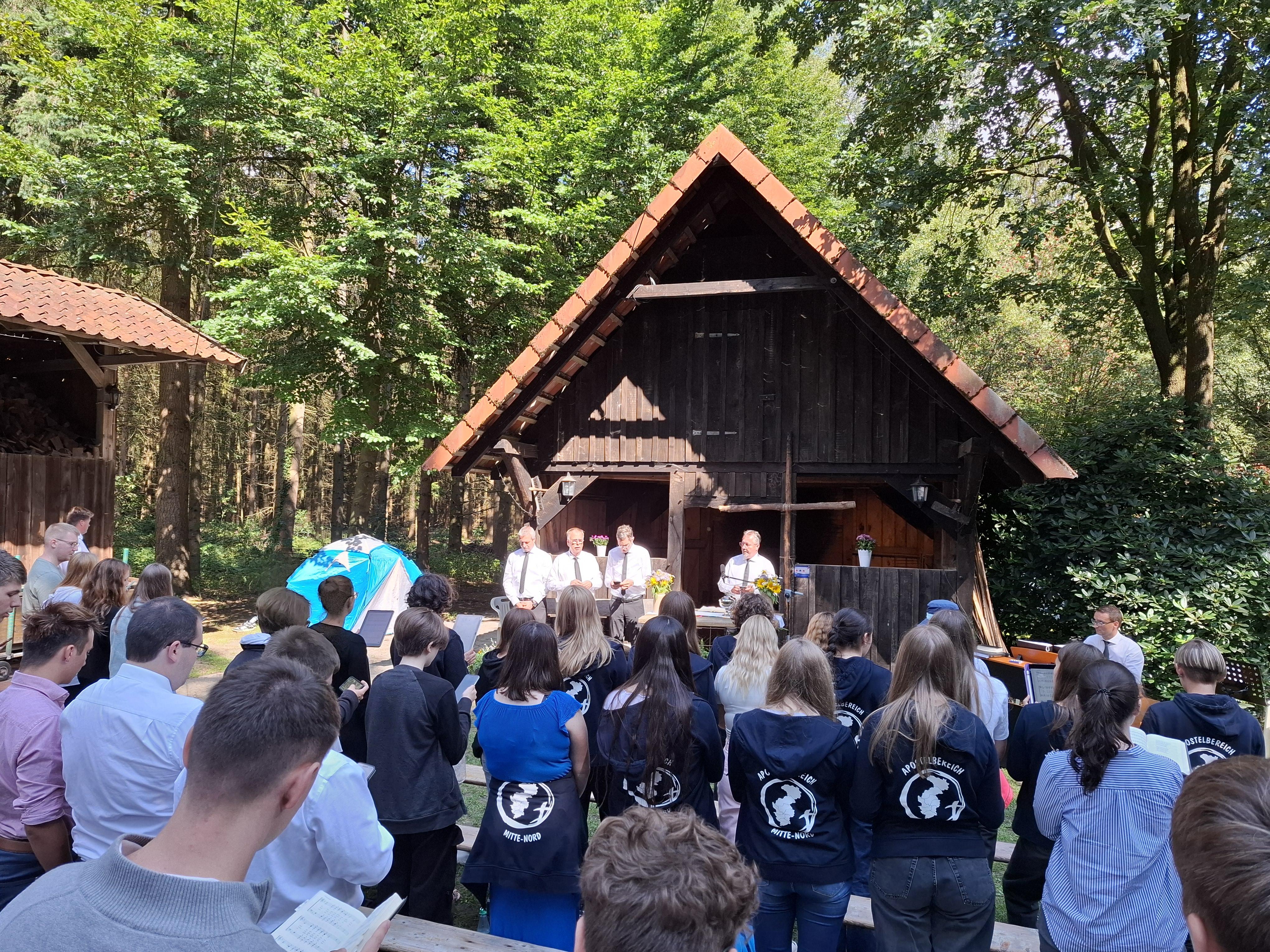 Im nördlichen Brandenburg, nahe der Stadt Eberswalde, lag für die Jugendlichen des Apostelbereiches Ost vom 5.-7 Juli der Fokus auf dem Kennenlernen. Im vergangenen Jahr waren die Kirchenbezirke Rostock, Neubrandenburg und Güstrow mit den vier Berliner Kirchenbezirken zu einem Bereich gefasst worden. Freitagnachmittag und Samstag boten Volleyball- und Fußballturniere sowie das Basketballfeld reichlich Möglichkeiten für sportliche Betätigung. Vier Workshops rund um den Glauben und ein Bibellesekreis sorgten für geistliche Impulse. Am Sonntagmorgen fuhren alle zur Stadthalle im Familiengarten Eberswalde, um gemeinsam den Gottesdienst für die Entschlafenen zu erleben.