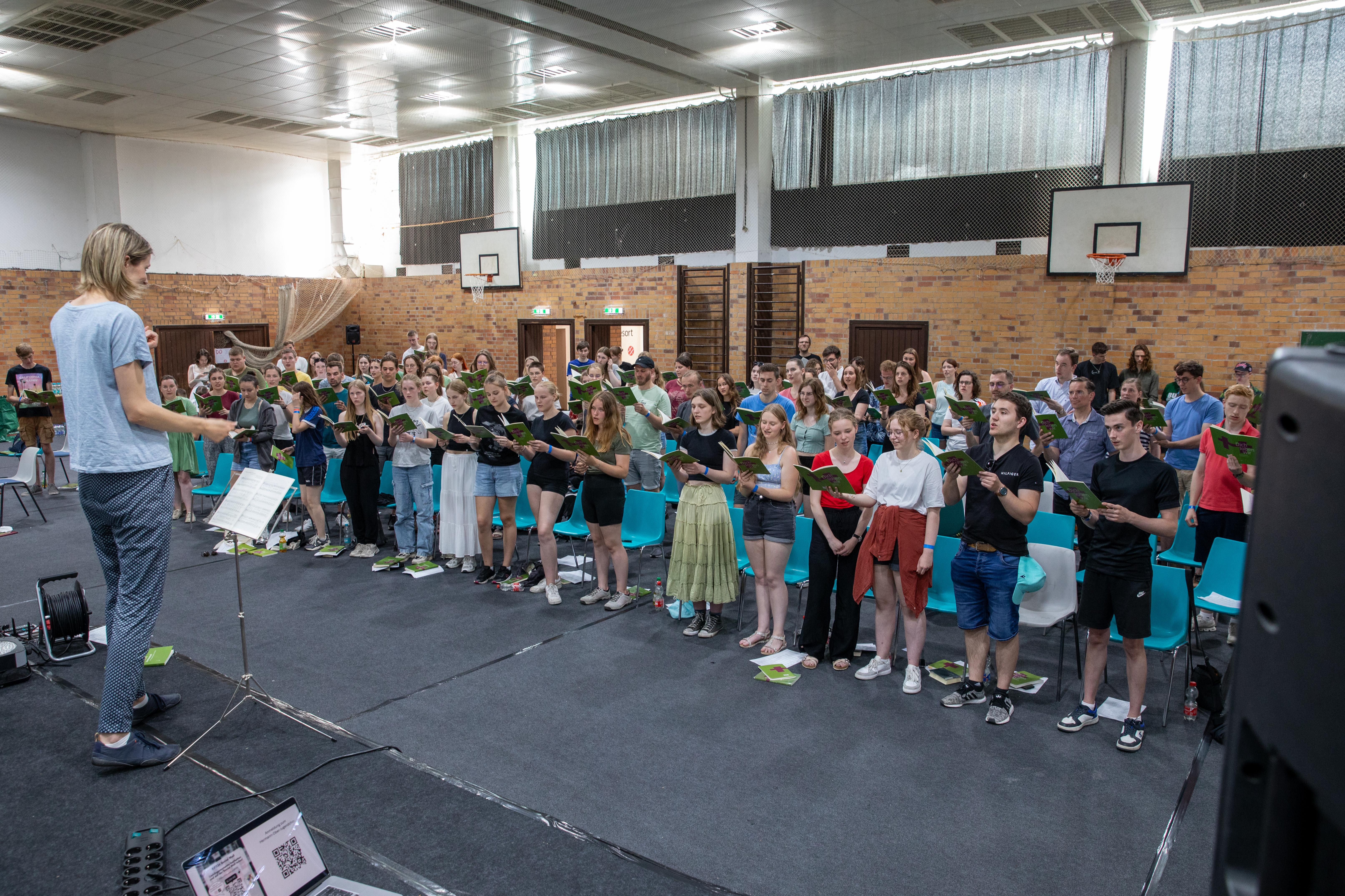 Im nördlichen Brandenburg, nahe der Stadt Eberswalde, lag für die Jugendlichen des Apostelbereiches Ost vom 5.-7 Juli der Fokus auf dem Kennenlernen. Im vergangenen Jahr waren die Kirchenbezirke Rostock, Neubrandenburg und Güstrow mit den vier Berliner Kirchenbezirken zu einem Bereich gefasst worden. Freitagnachmittag und Samstag boten Volleyball- und Fußballturniere sowie das Basketballfeld reichlich Möglichkeiten für sportliche Betätigung. Vier Workshops rund um den Glauben und ein Bibellesekreis sorgten für geistliche Impulse. Am Sonntagmorgen fuhren alle zur Stadthalle im Familiengarten Eberswalde, um gemeinsam den Gottesdienst für die Entschlafenen zu erleben.